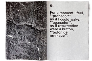 Written in braille, Tercera Persona is a discussion that takes place between ‘him’ and ‘her.’ The reader witnesses a conversation of misunderstandings, the impossibility that is communication and everything quotidian. Veronica Gerber Bicecci reduces language into a less complex framework, so everything we cannot understand — but that which haunts us every day — becomes again what it actually is and always was.